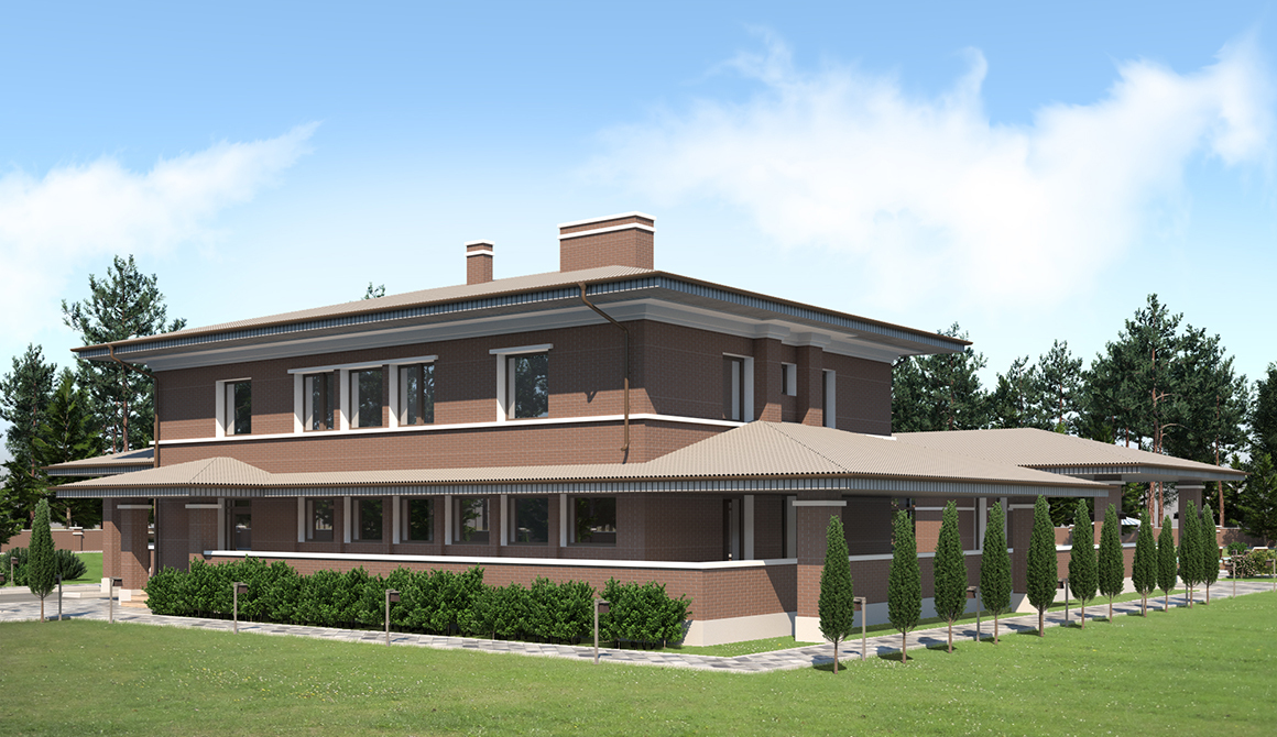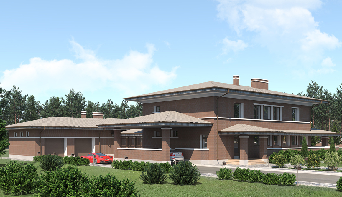 Проект индивидуального жилого дома площадью 300м2 с гаражом на две машины в стиле проерий.